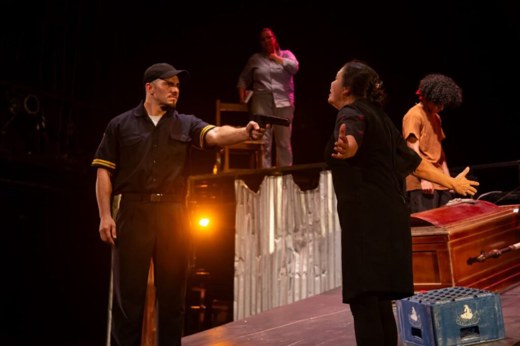 También participa Cesar Castillo como Gabriel y José, Amílcar García como el fotógrafo y el malandro, Jasón Hernández interpreta al mudo y Lenin Antequera como Juan, un personaje decisivo, junto a la cantante Ángela Marrero que, en una suerte de Celia Cruz, acompaña una romántica escena de este clásico del teatro venezolano.